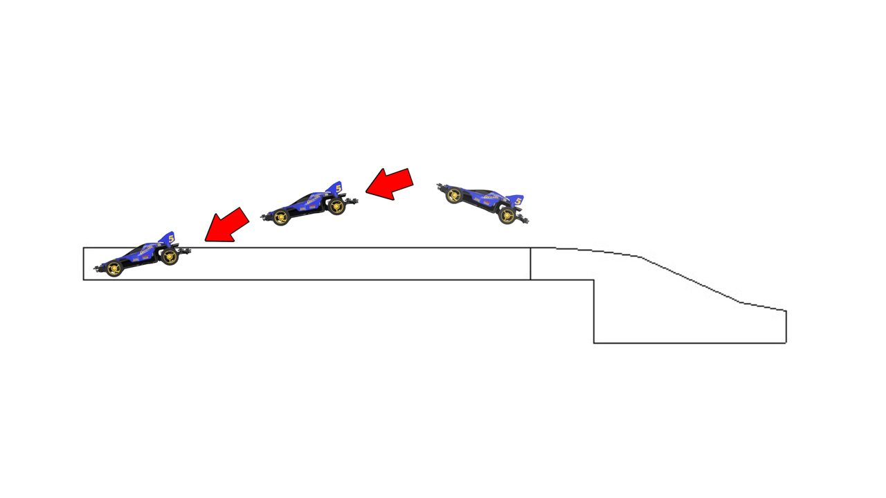スロープを登る際、ミニ四駆が左右どちらかに壁が付いていると