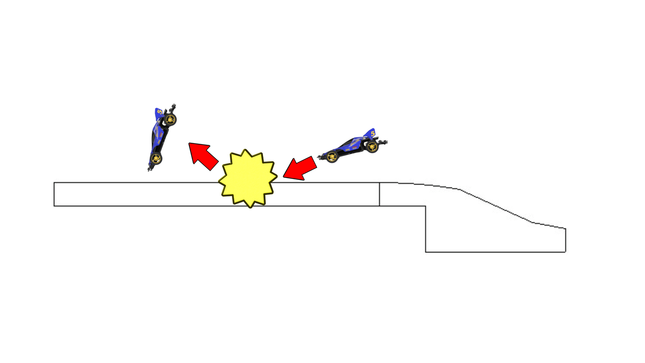 バンパー、ローラーは当たるけど重心がコース内にある場合